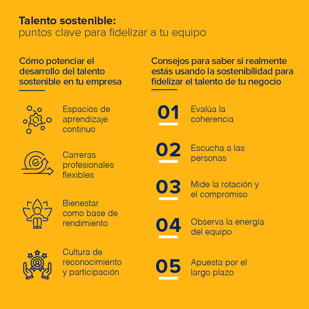 Potencia el talento sostenible en tu empresa. Descubre estrategias de gestión y acciones concretas para fidelizar a tu equipo más allá del salario.